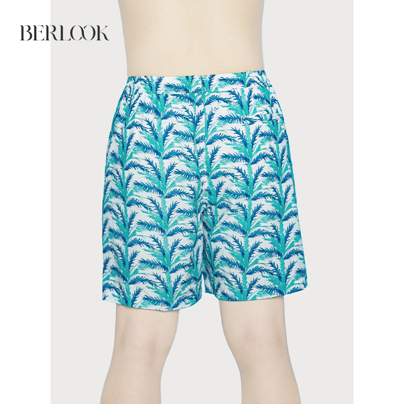 海边度假水上冲浪 夏季 BERLOOK蓝色热带植物印花男士 沙滩裤