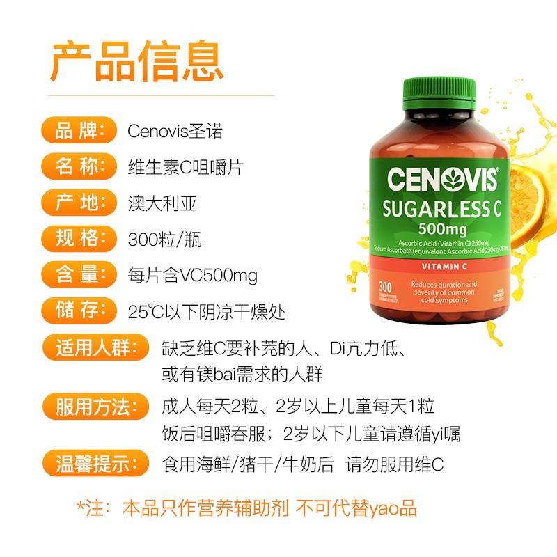 组合装 澳洲Cenovis圣诺复合维生素B族 维生素C咀嚼片