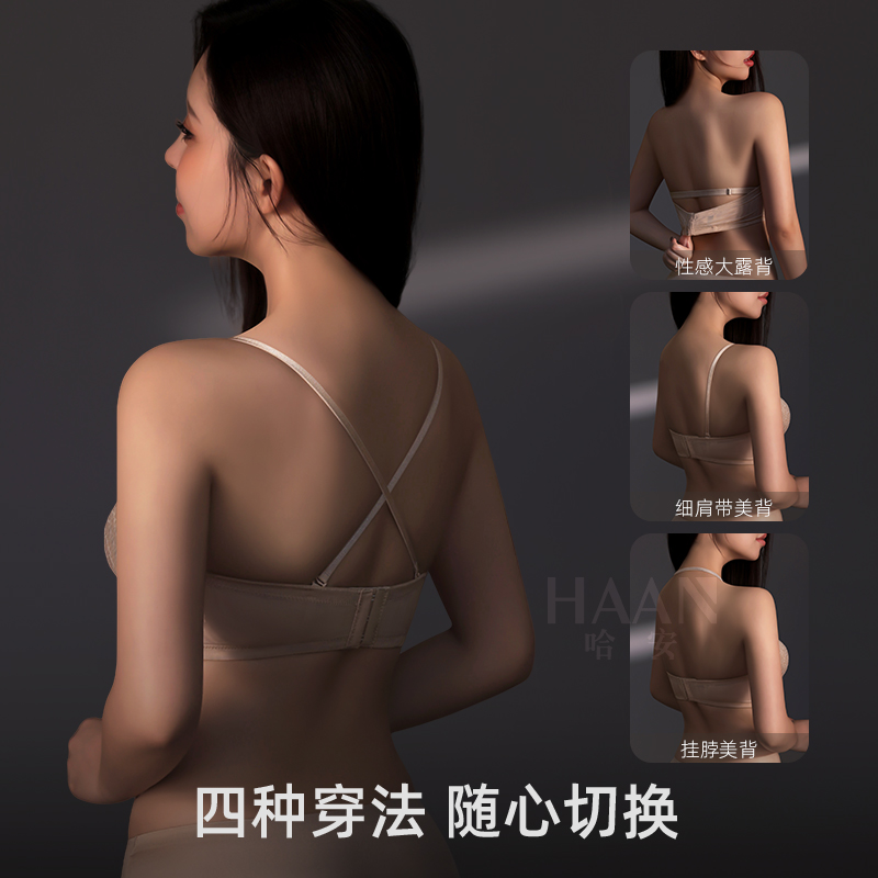 超细肩带特调粉底液肤色隐形显大抹胸小胸聚拢加厚女内衣平胸文胸