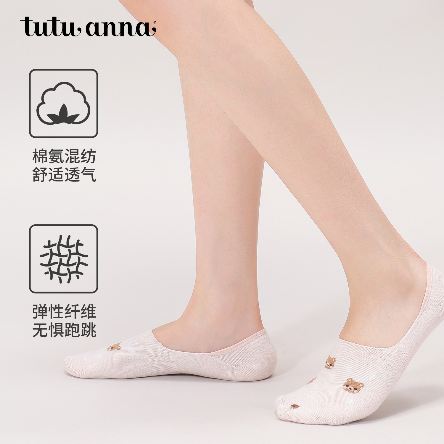 tutuanna春夏女士短袜 纯色隐形防滑不掉跟棉质透气百搭船袜女