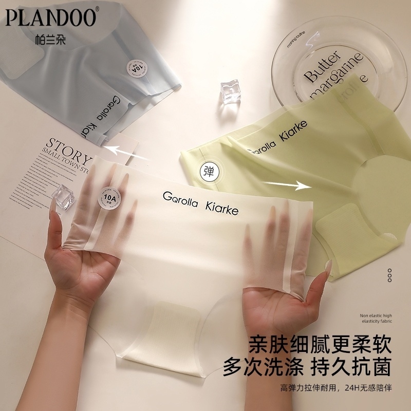 帕兰朵女士超薄冰丝凉感亲肤裸感简约无痕舒适纯棉抗菌裆三角裤