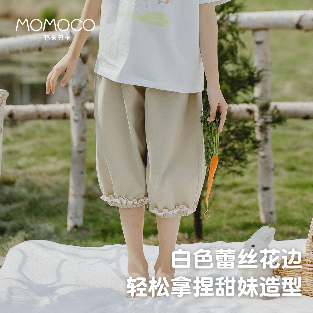 玛米玛卡女童花边休闲裤 纯棉七分裤 2025夏季 儿童韩版 新款 MOMOCO