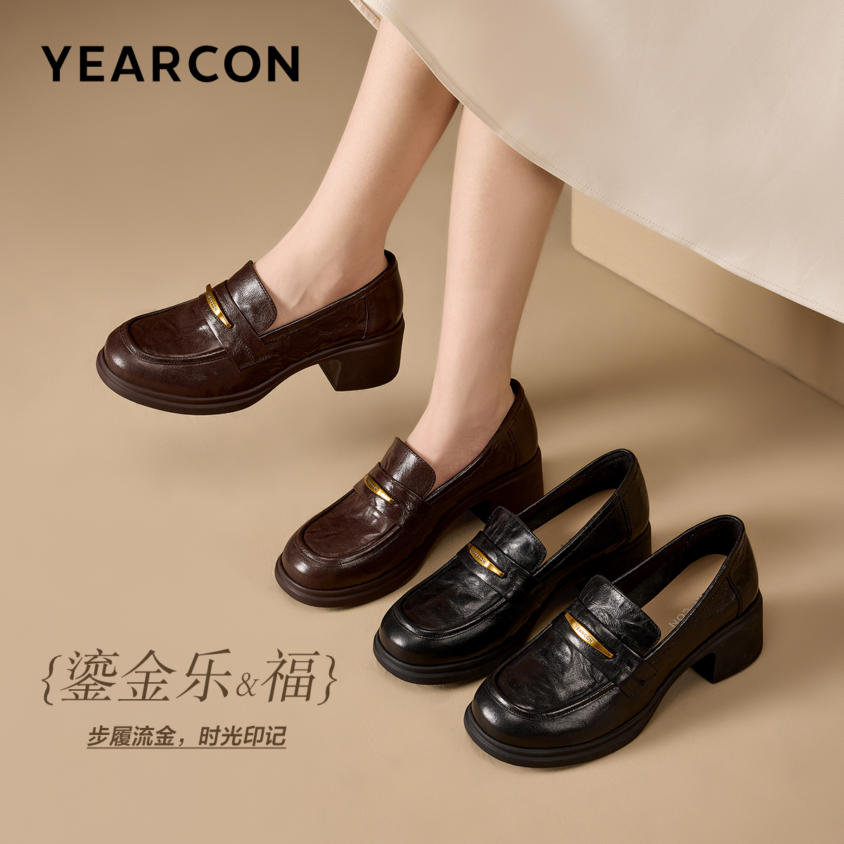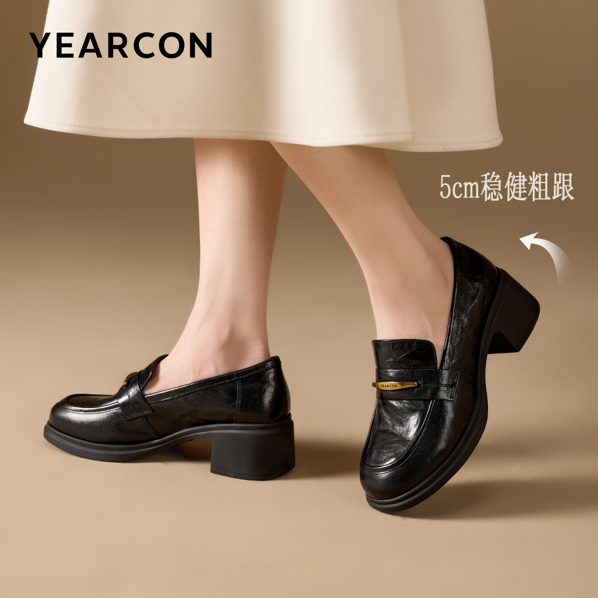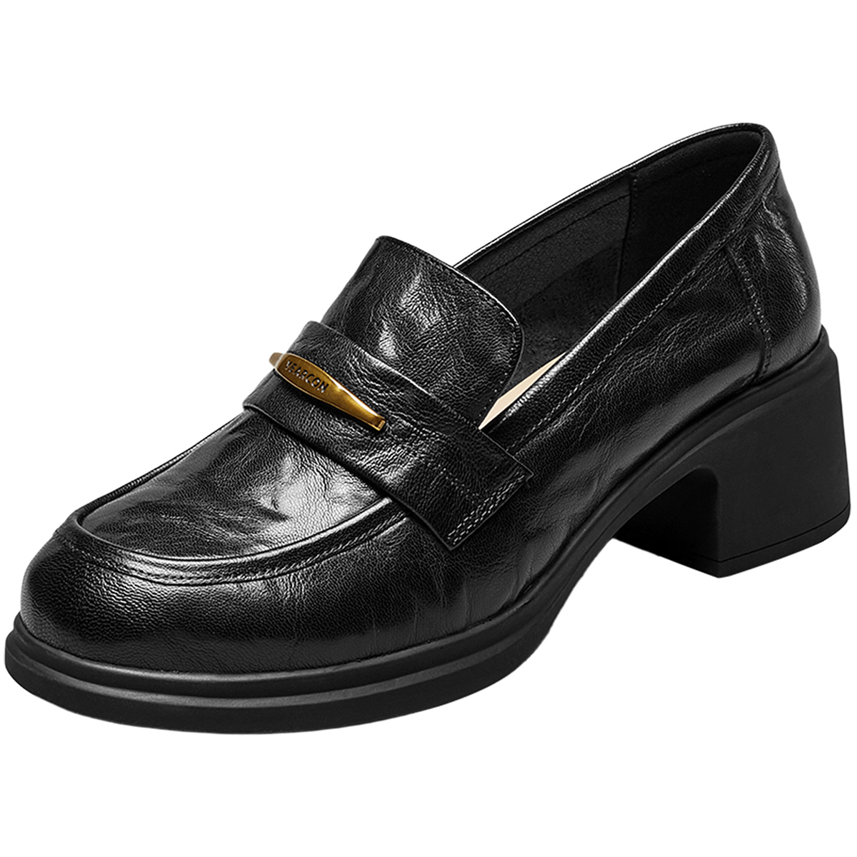 面试粗跟通勤软面真皮一脚蹬小皮鞋 羊皮乐福鞋 2025秋季 意尔康女鞋