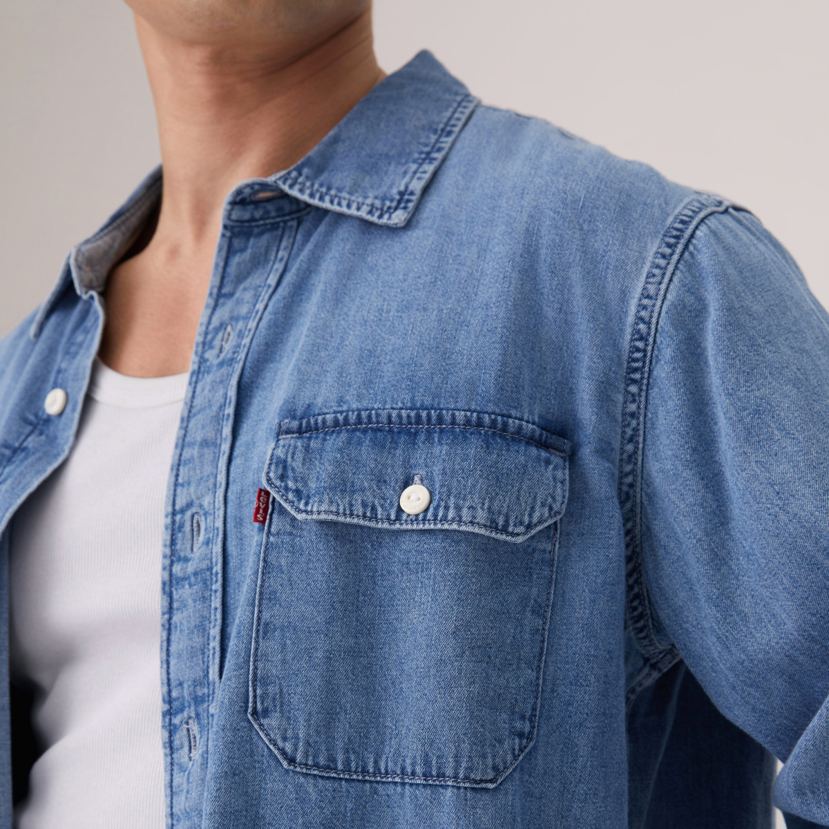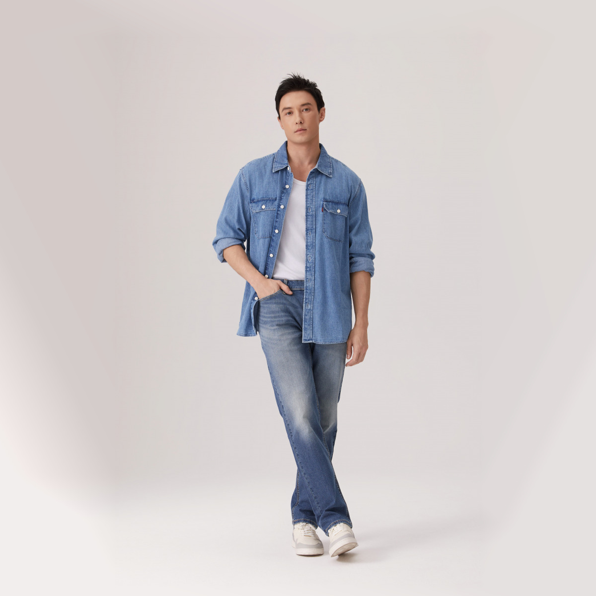 s李维斯男士 简约美式 经典 时尚 水洗情侣外套 宽松蓝色牛仔衬衫 Levi