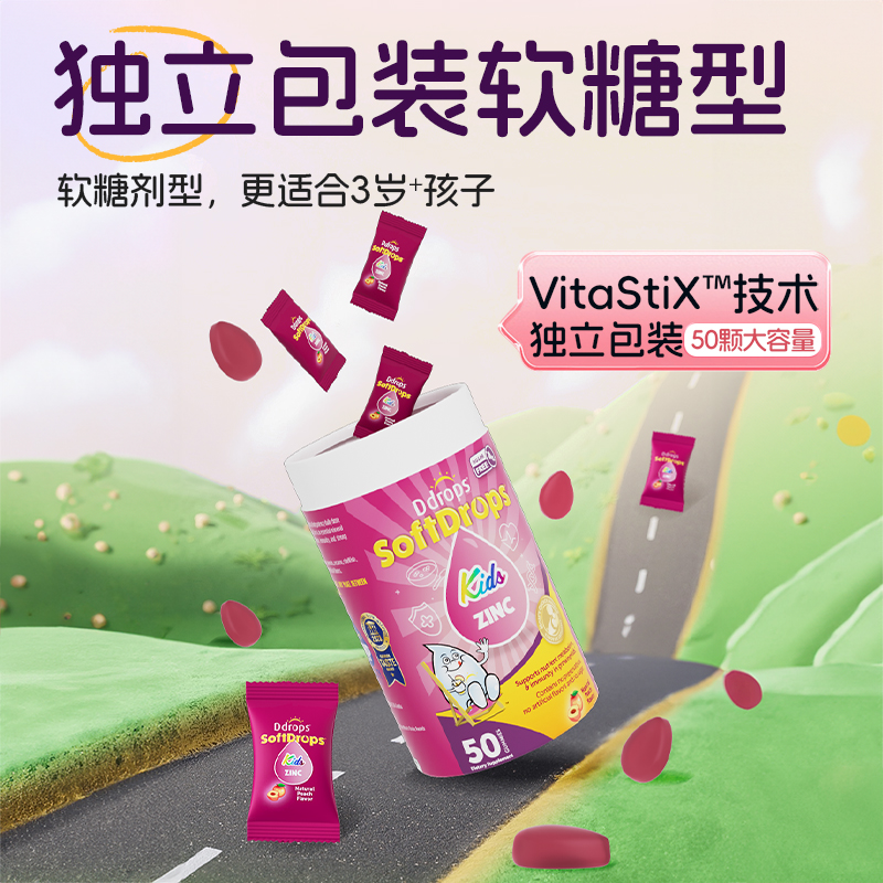 Ddrops滴卓思儿童补锌软糖锌补充剂青少年钙铁锌非口服液滴剂锌片