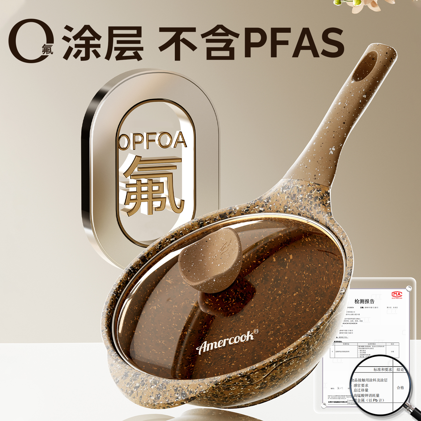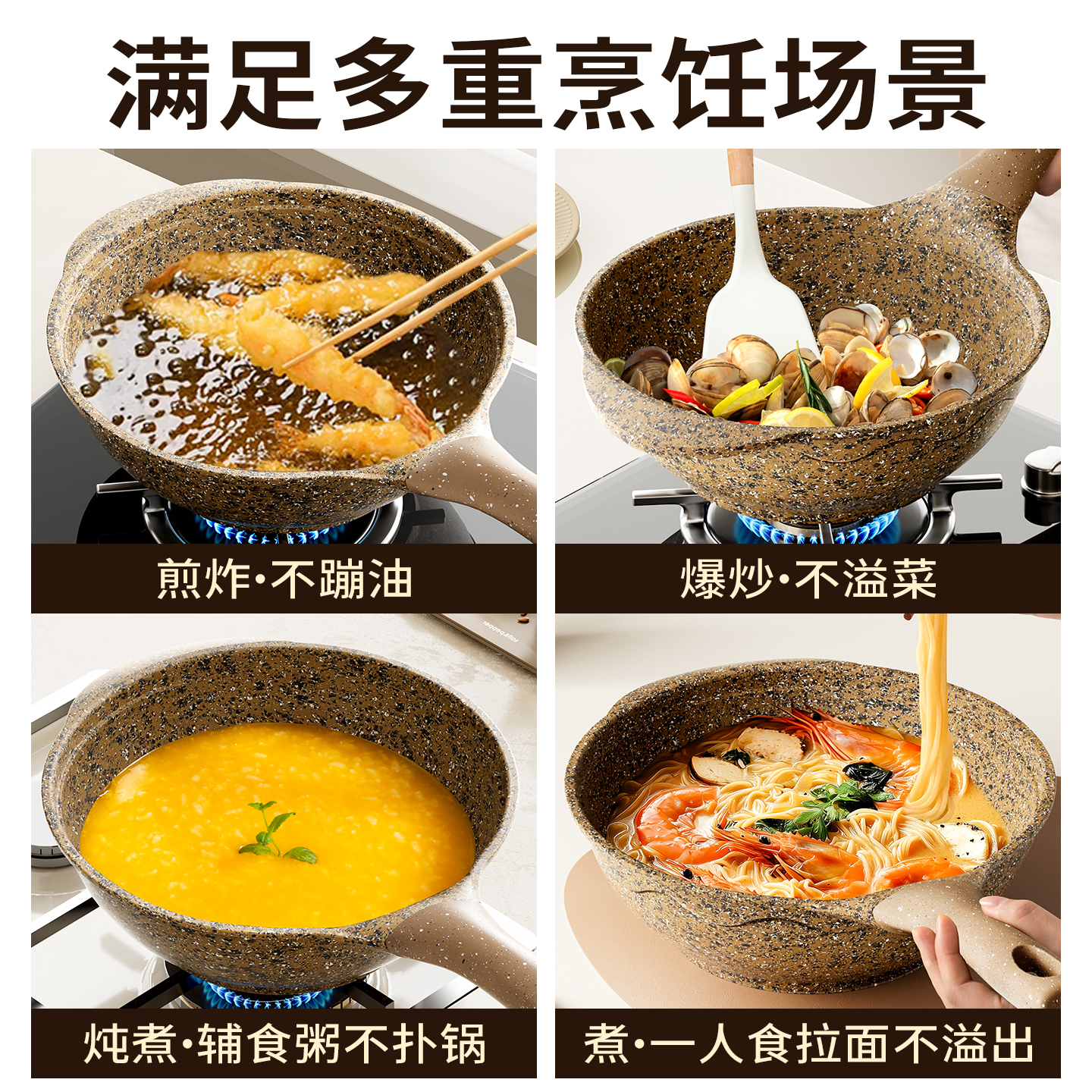 美 不粘锅炒锅家用锅炒菜锅平底锅麦饭石色电磁炉燃气灶专用炊具