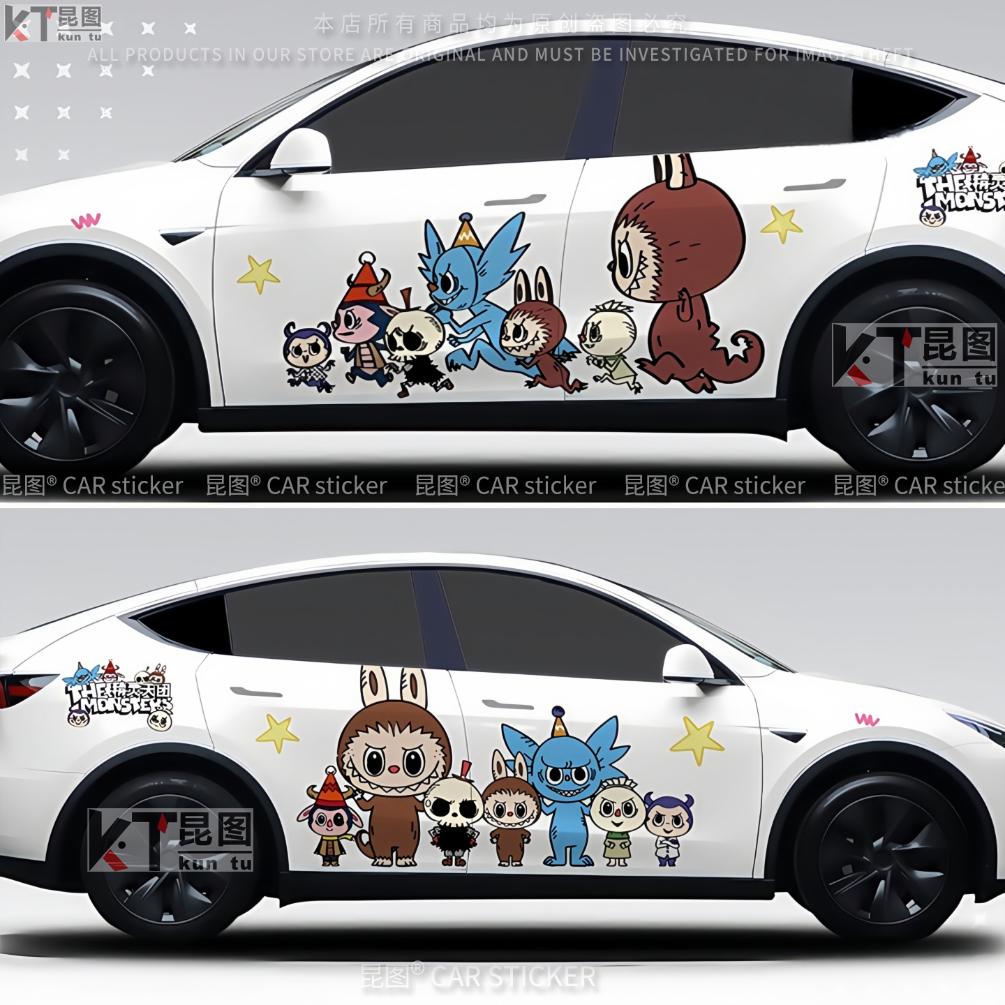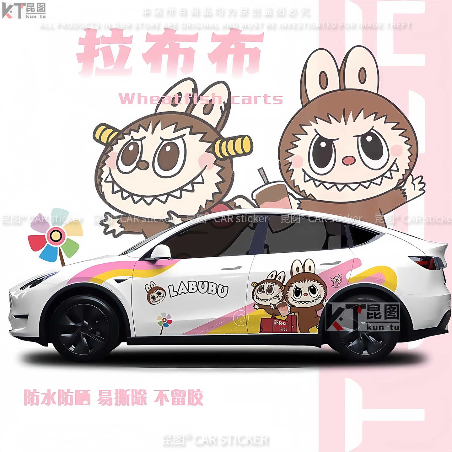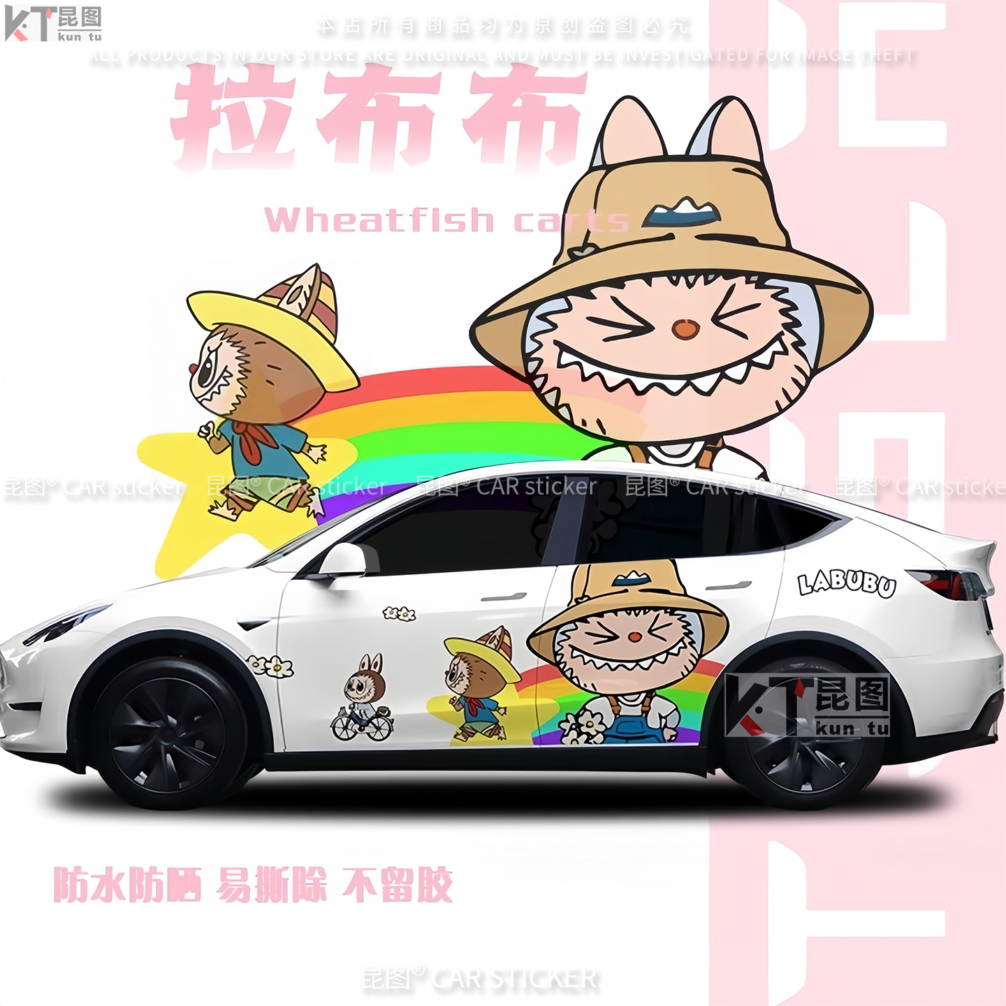 特斯拉ModelY汽车贴纸卡通拉布布车贴车身两侧装 饰车门拉花机盖