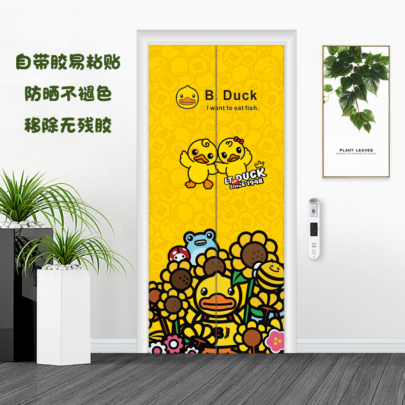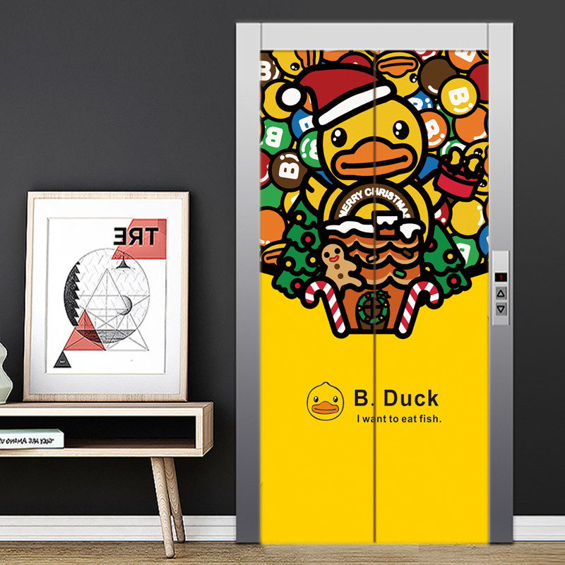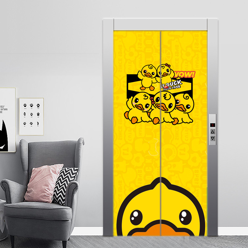 卡通大黄鸭电梯门装 自粘防水推拉门防火门贴纸移除无残胶 饰贴画