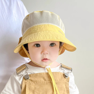婴儿帽子夏季 遮阳帽渔夫帽男童女宝宝网大檐可拆披肩儿童透气速干