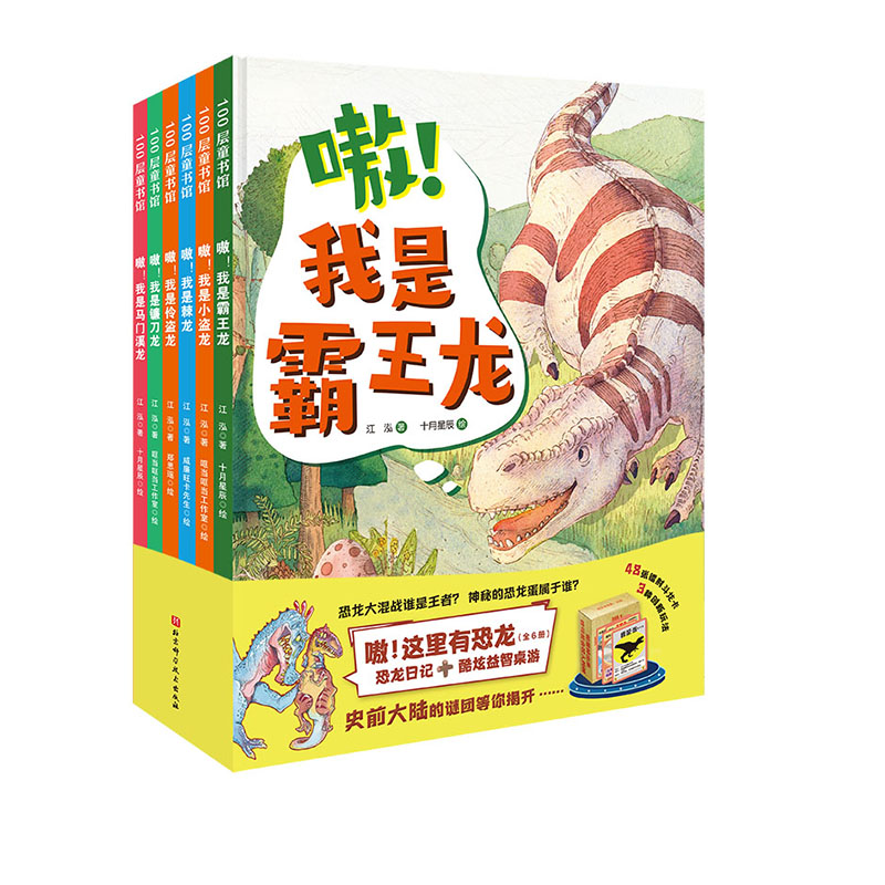 首套包含科普故事 全6册 酷炫益智桌游 恐龙绘本 北京科学技术 嗷这里有恐龙 48张镭射斗龙卡陪你勇闯白垩纪 精装