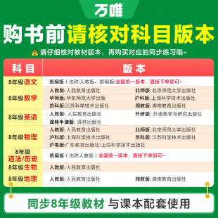 2026万唯情境题八年级上册下册基础题语文数学英语物理生物地理人教版 初二8上八下情景专项训练万维中考 北师大华师全套同步练习册