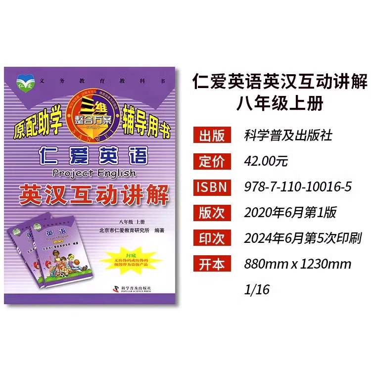 2024秋仁爱英语八年级上册英汉互动讲解初二8上教辅用书含课文翻译单元 归纳总结教材知识详解仁爱官方教辅英汉互译教材讲解