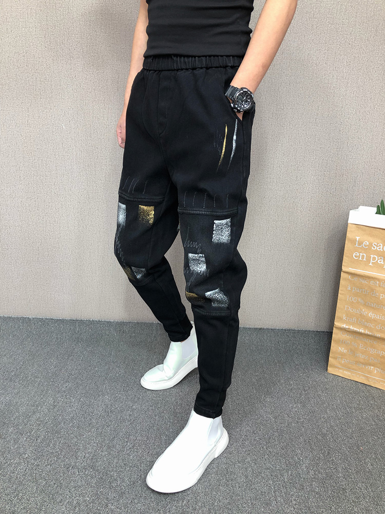 潮牌百搭宽松哈伦裤 油漆牛仔长裤 青年男士 潮流韩版 束脚个性 春秋季