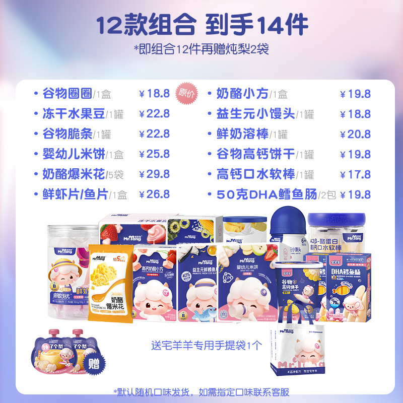 宅羊羊宝宝零食大礼包儿童磨牙棒米饼无添加婴幼儿辅食 98任选
