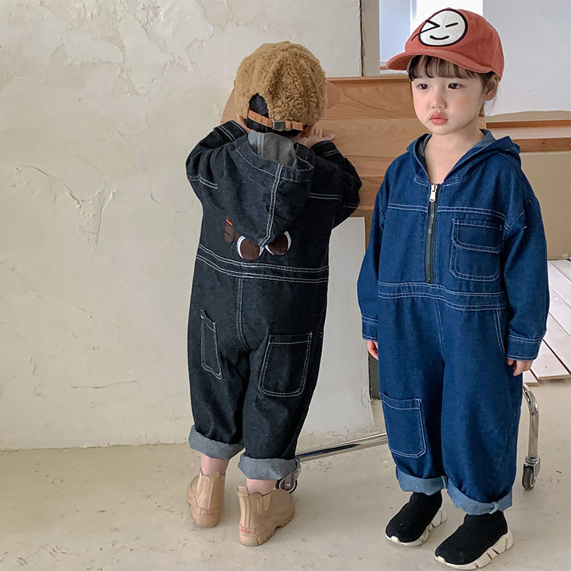 连体裤 男童工装 子潮 春秋装 儿童牛仔连体衣服宝宝女童洋气2025新款