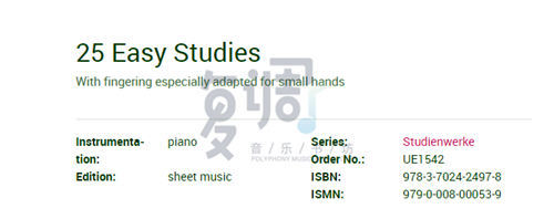 25首练习曲 乐谱 Op.100 原版 UE1542 布格缪勒