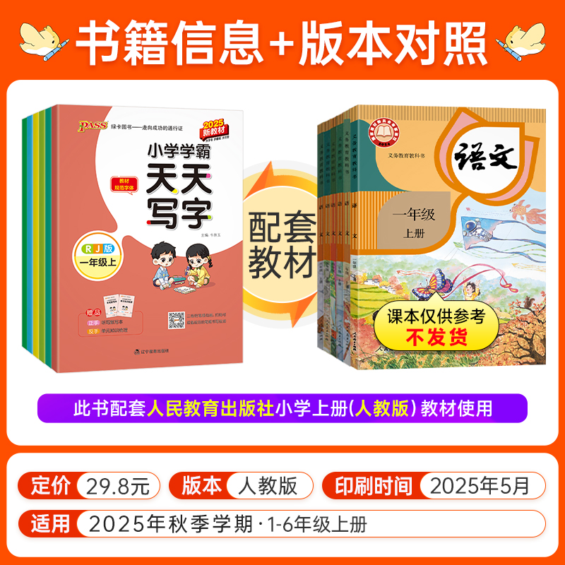 2025新版 一二年级上册三四五六下册描红临摹字帖教材规范体铅笔练习字帖练透生字词听写PASS绿卡图书 小学学霸天天写字语文人教版