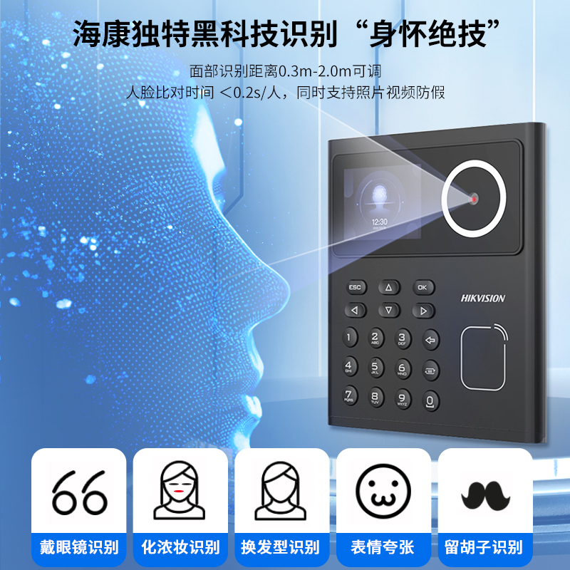 海康威视人脸识别门禁系统一体机办公室刷脸指纹密码 刷卡门锁套装