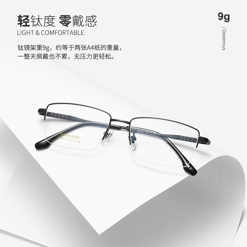 超轻纯钛半框眼镜近视男商务休闲大脸宽显瘦防蓝光网上可配有度数
