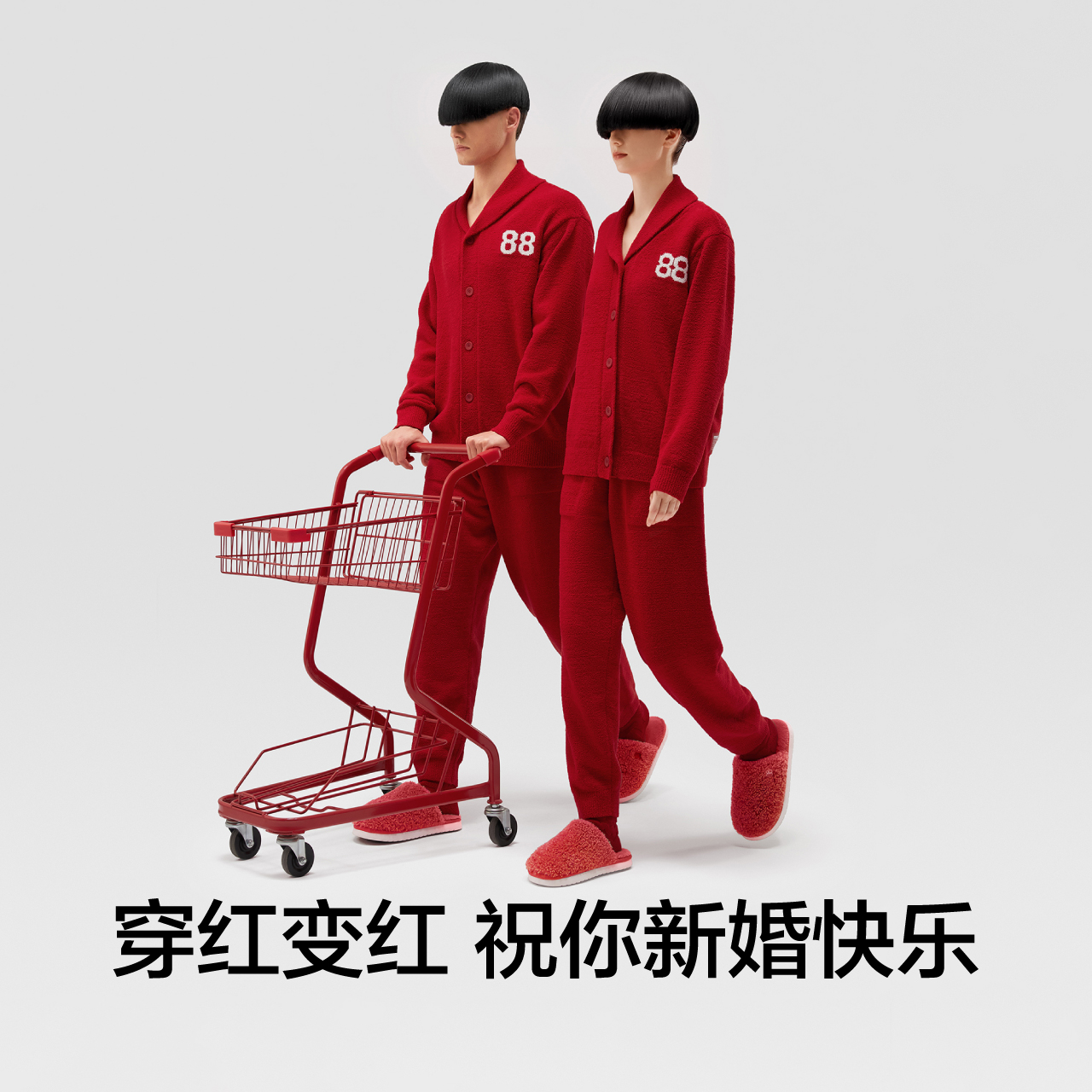 本命年 家居服套装 马克公主情侣睡衣女春秋款 纯棉红色新婚结婚男士