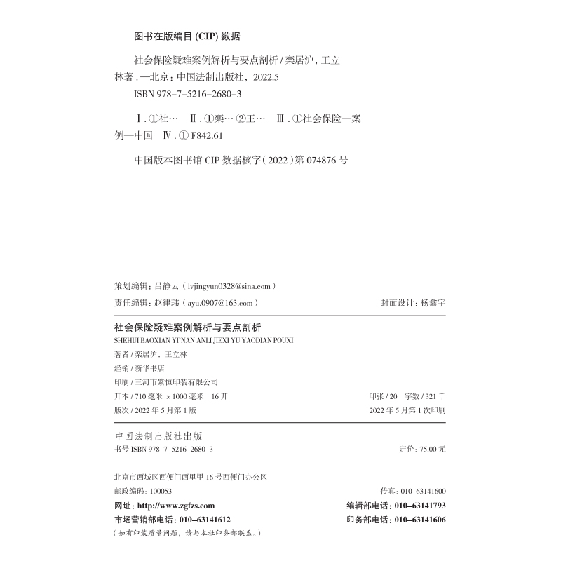 王立林 栾居沪 社会保险争议案例 社会保险领域热点问题 社9787521626803 2022新书 中国法制出版 社会保险疑难案例解析与要点剖析