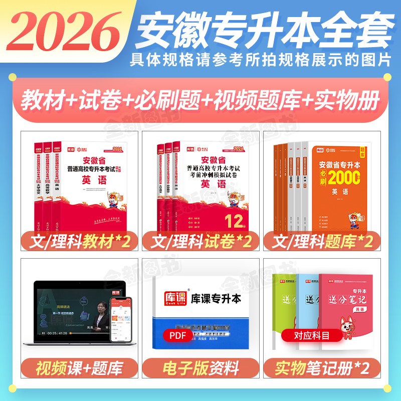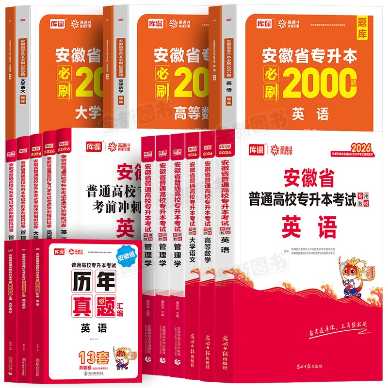 库课官方2026年安徽省专升本教材试卷必刷2000题英语高等数学大学语文高数管理学历年真题库卷统招复习资料考试书网课词汇库克2025