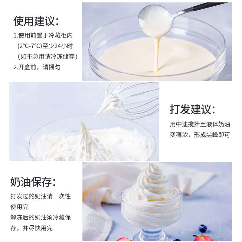 牛佰仕淡奶油1L家用动物稀奶油蛋糕裱花奶茶雪顶烘焙咖啡饮料整箱