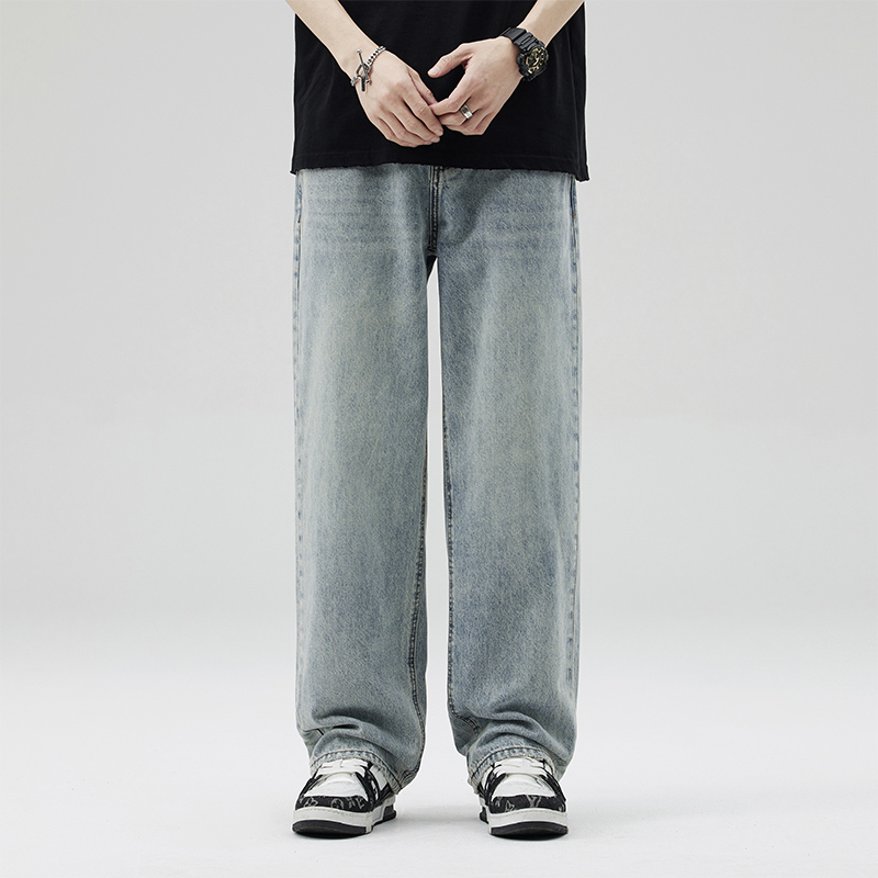 简约百搭裤 快鱼美式 宽松舒适直筒裤 男2025年秋新款 子 复古蓝牛仔裤