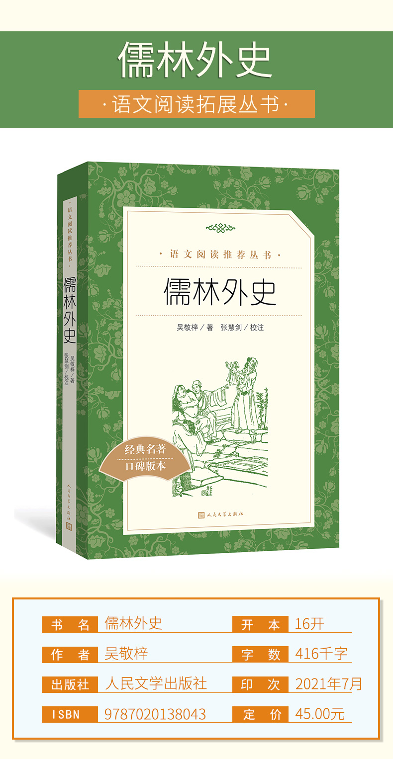 原著正版 人民文学出版 完整无删版 福州现货 畅销书籍新华 语文配套名著阅读 儒林外史 初中生九年级暑假课外阅读书籍 社789年级