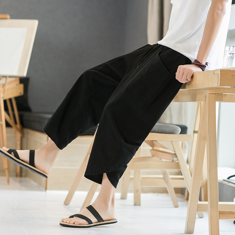 宽松休闲短裤 薄款 运动男裤 子胖子大码 亚麻七分裤 棉麻沙滩裤 男夏季