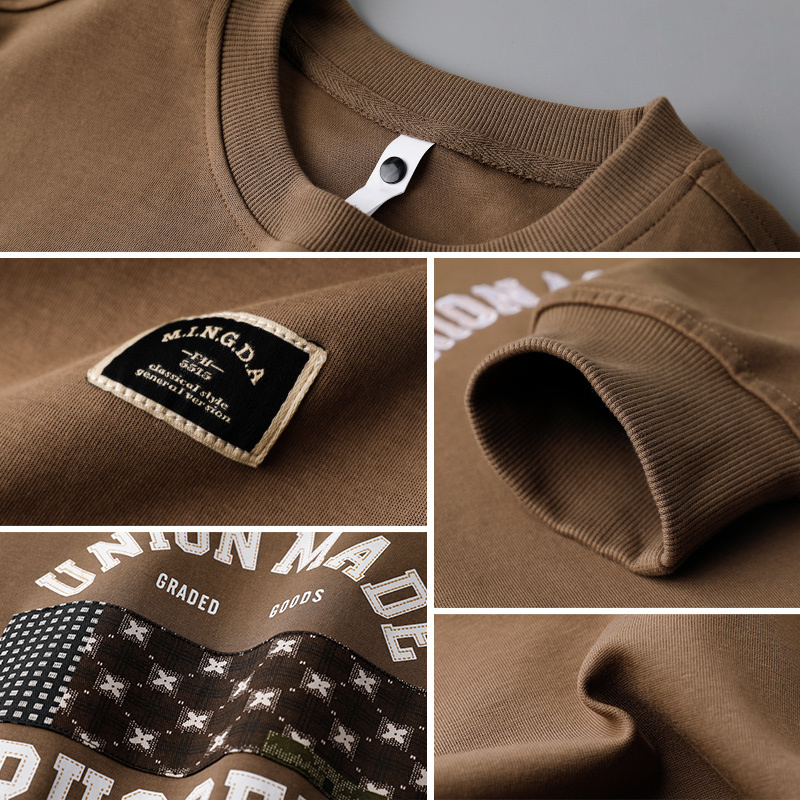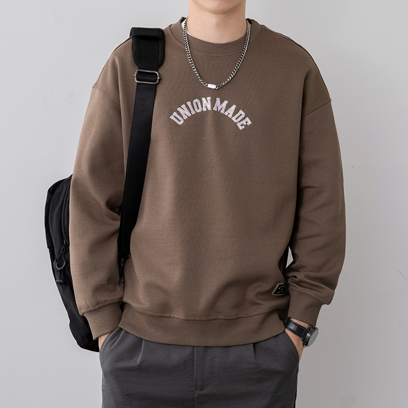 套头打底衫 潮牌字母印花纯色休闲长袖 男 宽松大码 圆领卫衣男春秋款