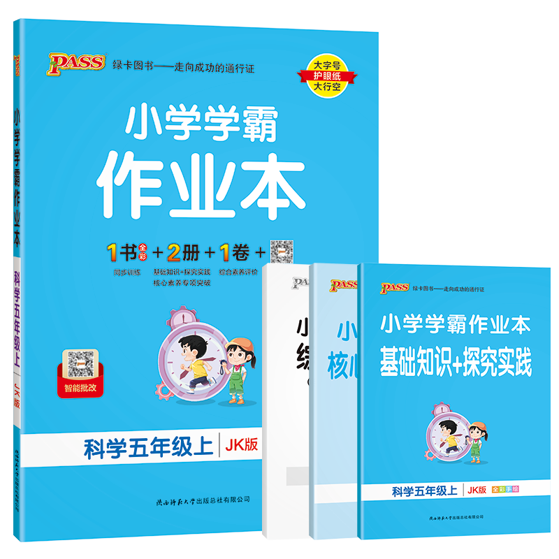 2025秋适用pass绿卡小学学霸作业本五年级上册科学JK教育科学版 期中末试卷辅 全彩手绘5年级上同步训练基础知识手册全解读五上单元