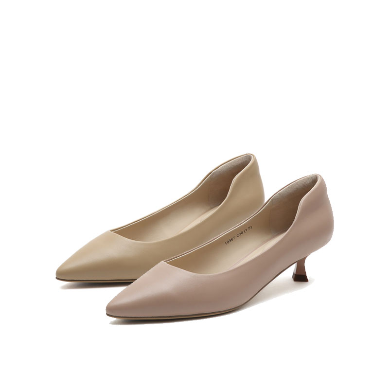 大女主 婚鞋 百思图25秋新款 尖头女浅口单鞋 裸色高跟鞋 双11预售
