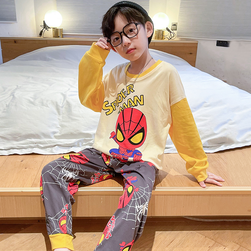 纯棉小男孩12岁大童家居服套装 长袖 秋冬 秋季 儿童睡衣男童2024新款
