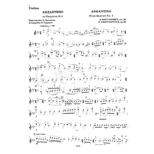 from 9790706364087 op83 书 Shostakovich 俄罗斯DSCH原版 选自第4号四重奏 小提琴与钢琴 Quartet 肖斯塔科维奇 Andantino 小行板