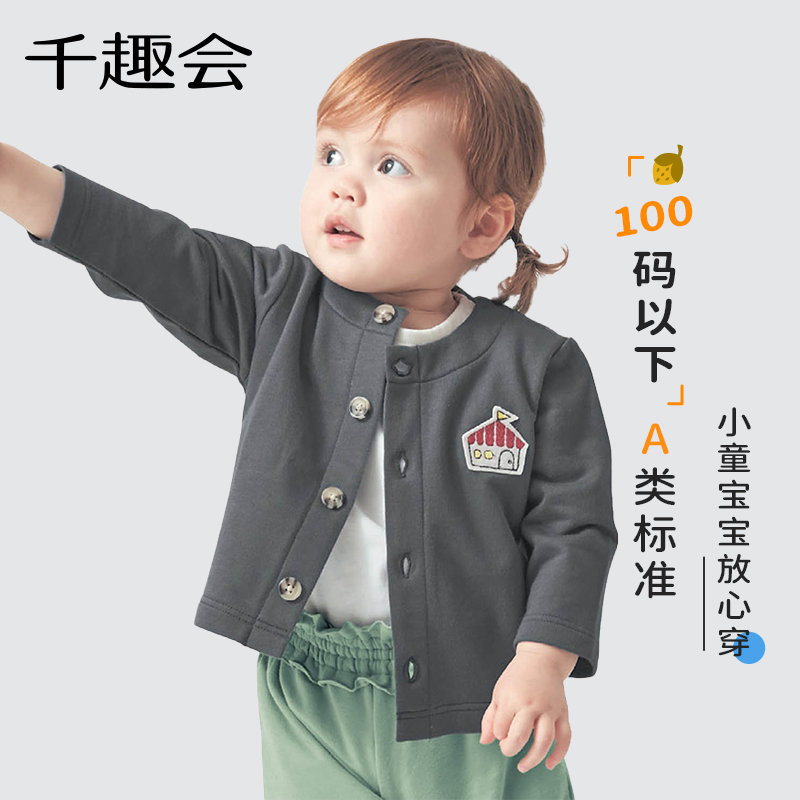 千趣会童装 外套男女童休闲布标毛圈棉质 25年春秋幼儿园宝宝开衫