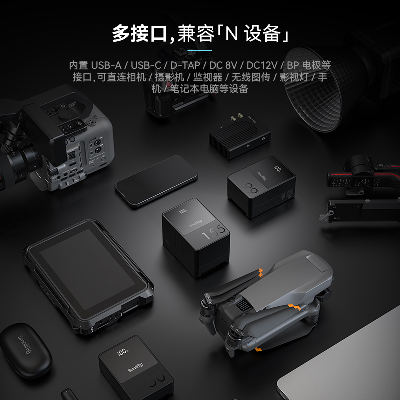 155 斯莫格V口电池VB50 212黑旋风pro摄像手机电脑摄影灯补光灯监视器图传滑轨V扣挂板供电系统 3C认证