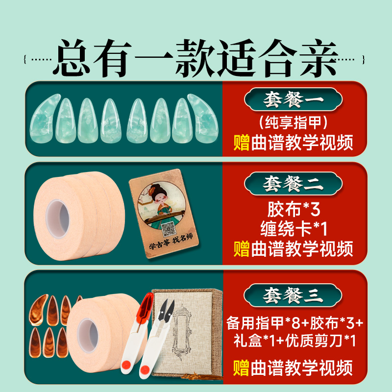 古筝指甲儿童专用玳瑁色初学成人专业弹甲片义甲演奏级双面弧胶布