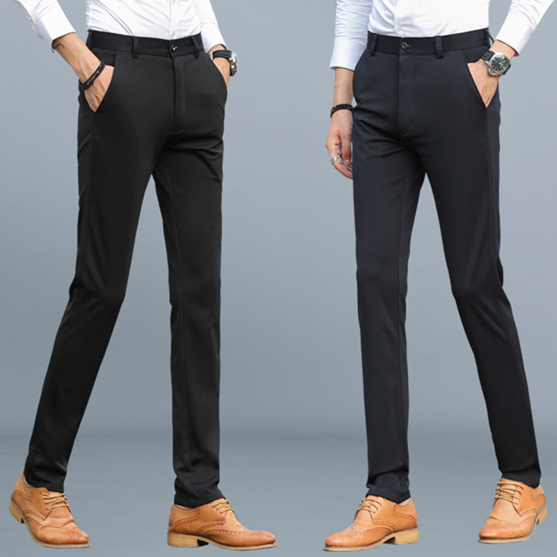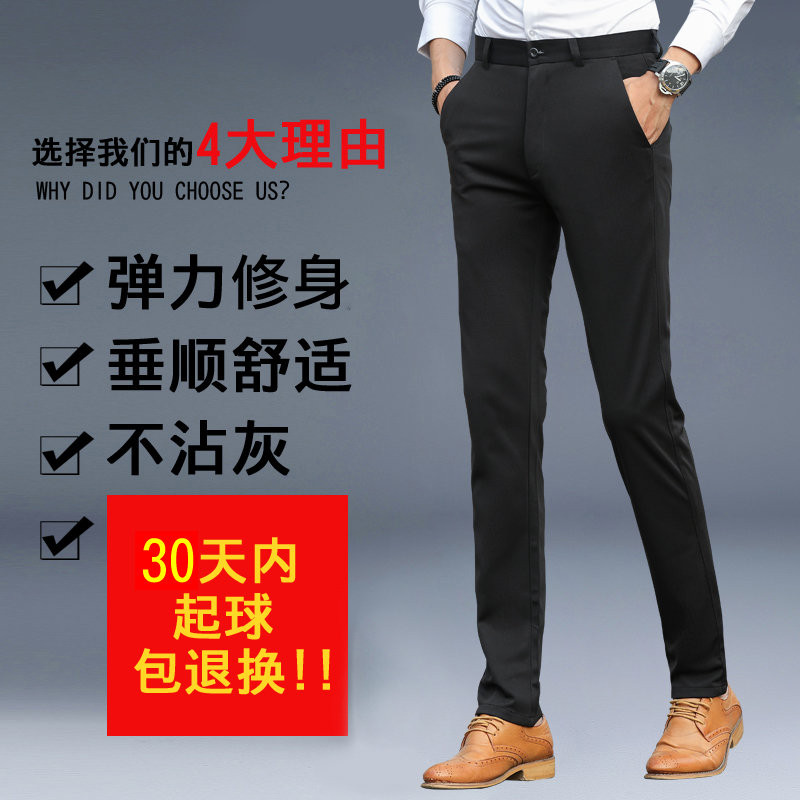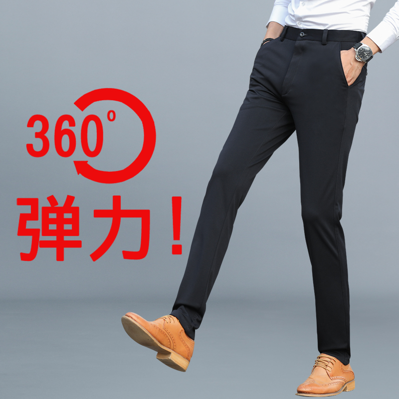 男直筒商务男裤 秋冬季 厚款 西裤 子男工装 休闲裤 裤 男黑色弹力修身