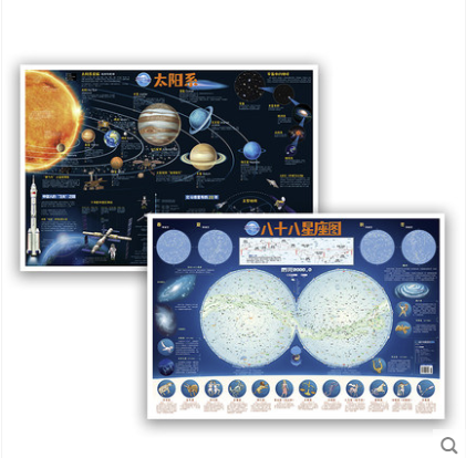 2张 儿童星座科普百科装 新版 八十八88星座地图覆膜防水少儿儿童房间专用贴图 饰贴画北斗学生地图挂图太空宇宙地图 太阳系地图