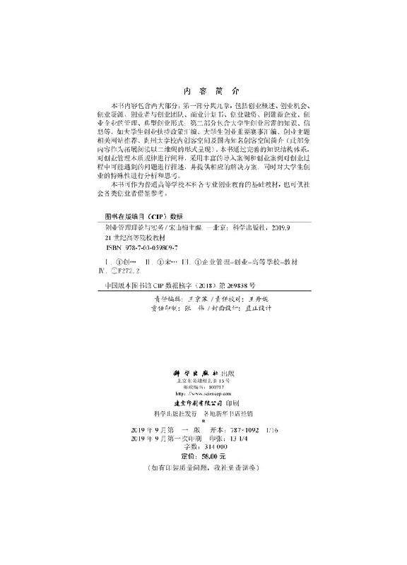 宋山梅 社 著 科学出版 9787030598097 大学教材 创业管理理论与实务