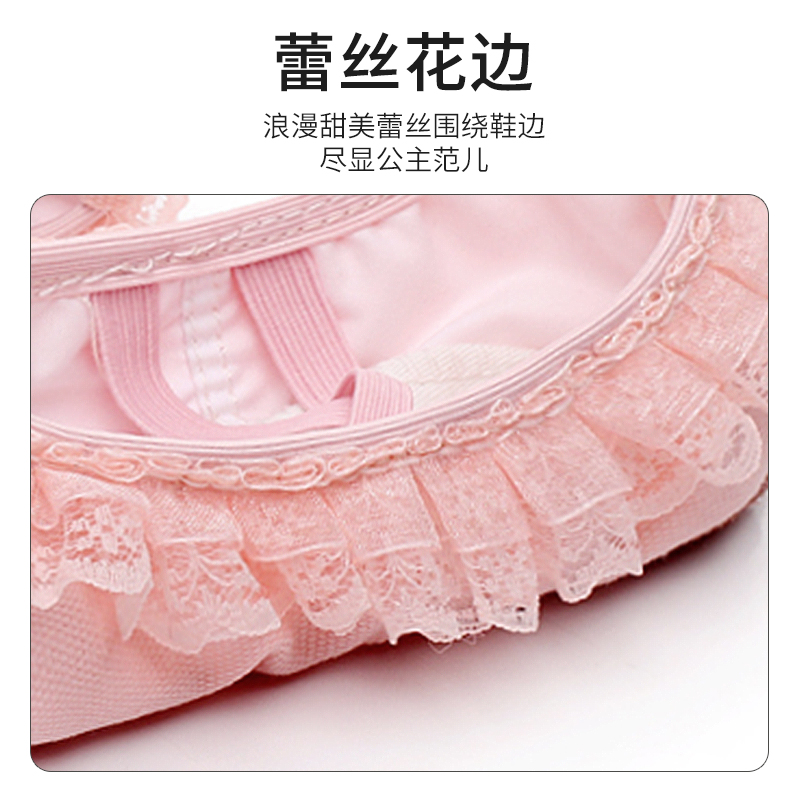 舞蹈鞋 女儿童软底秋冬练功形体加绒肉色花边猫爪女童公主芭蕾跳舞