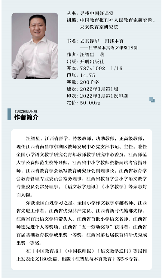 开明出版 社 寻找中国好课堂 去其浮华 语文老师用书 汪智星本真语文课堂18例 小学语文老师参考书 开明润泽 归其本真