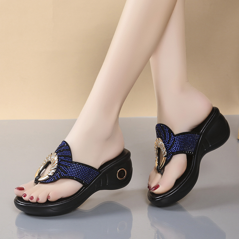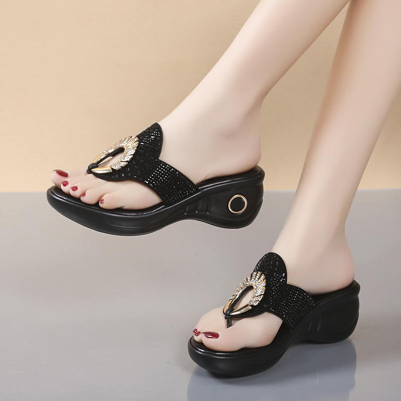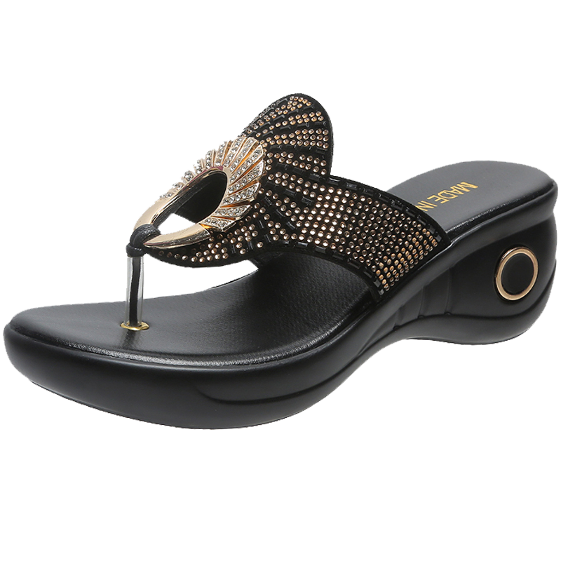时尚 厚底坡跟女士凉鞋 夹趾人字拖女 女夏外穿2025年新款 水钻凉拖鞋