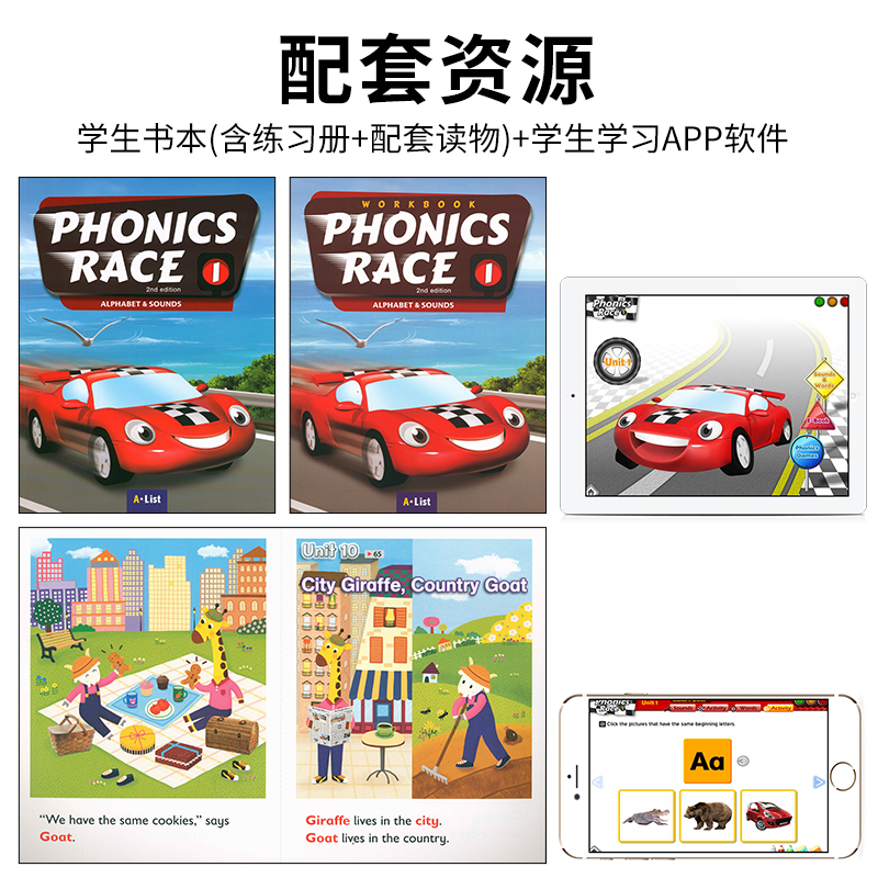 phonics race 音长元 自营 音混合音自然拼读 phonics拼读发音26个英文字母短元 新版 幼少儿英语自然拼读教材字母发音 1234级