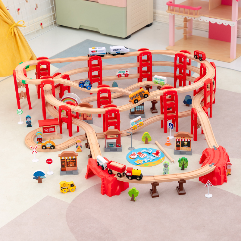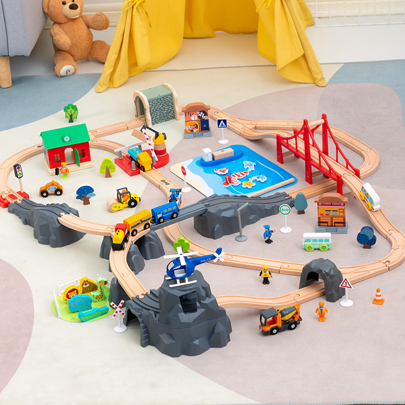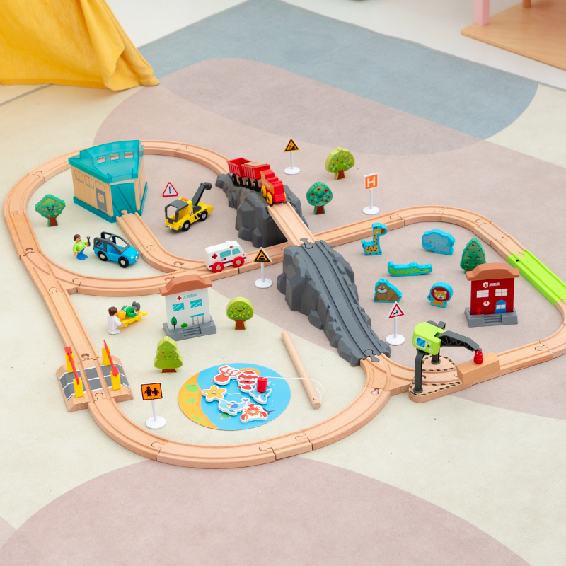 拼搭积木电动小火车套装 儿童仿真高铁车玩具3岁 木质轨道车男女孩