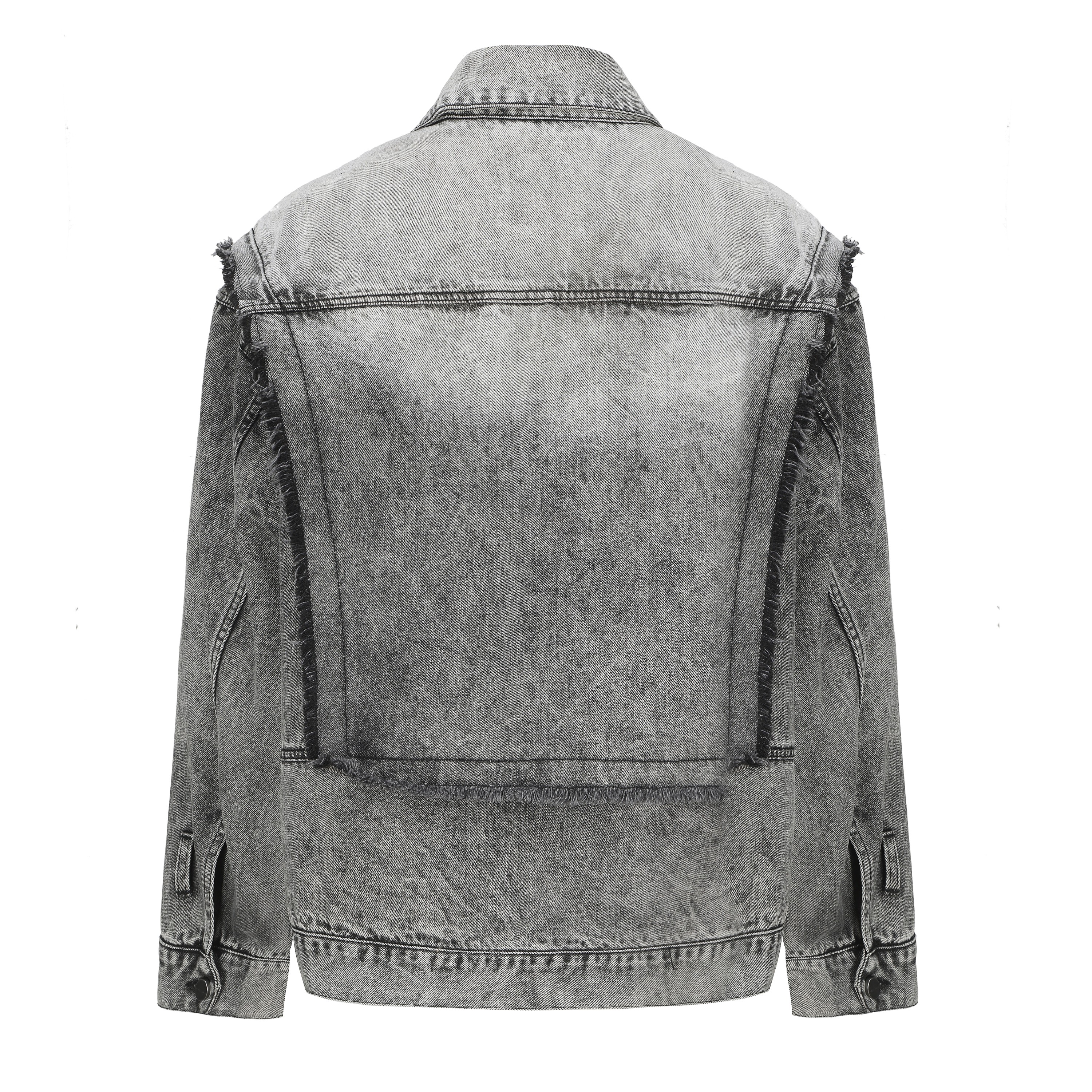 唐狮2025秋季 牛仔外套女巴恩风复古做旧潮牌宽松撞色翻领夹克 新款