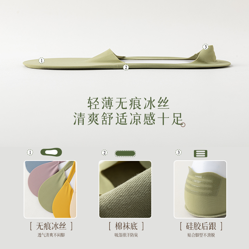 高跟鞋 袜子薄款 袜子 冰丝隐形袜棉制底防滑不掉跟浅口鞋 船袜女夏季