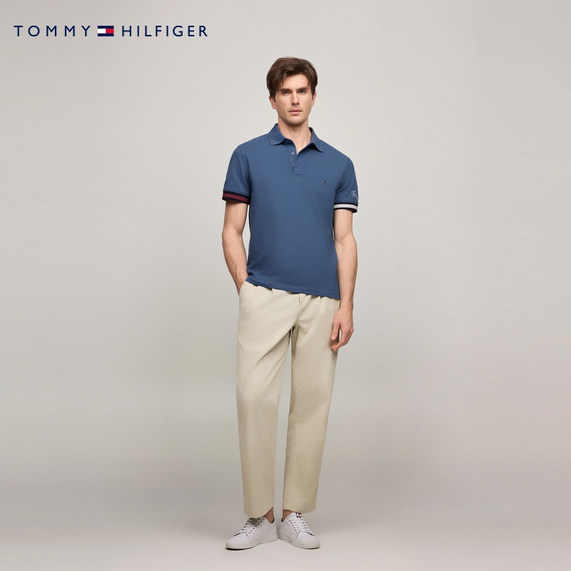 透气舒适 短袖 Tommy春夏男装 口修身 T恤POLO衫 珠地网眼撞色袖