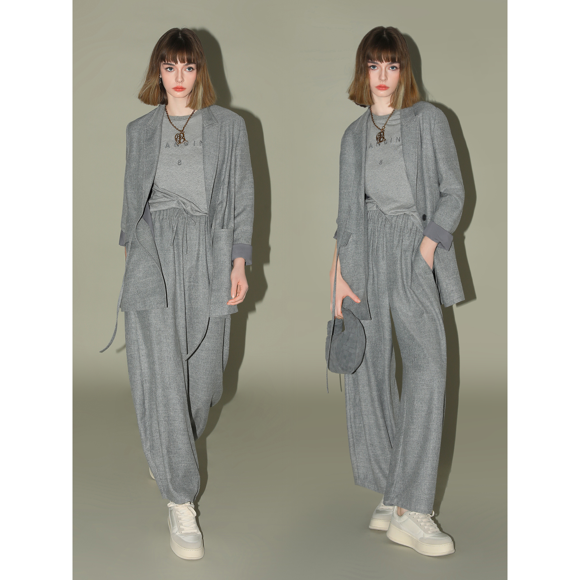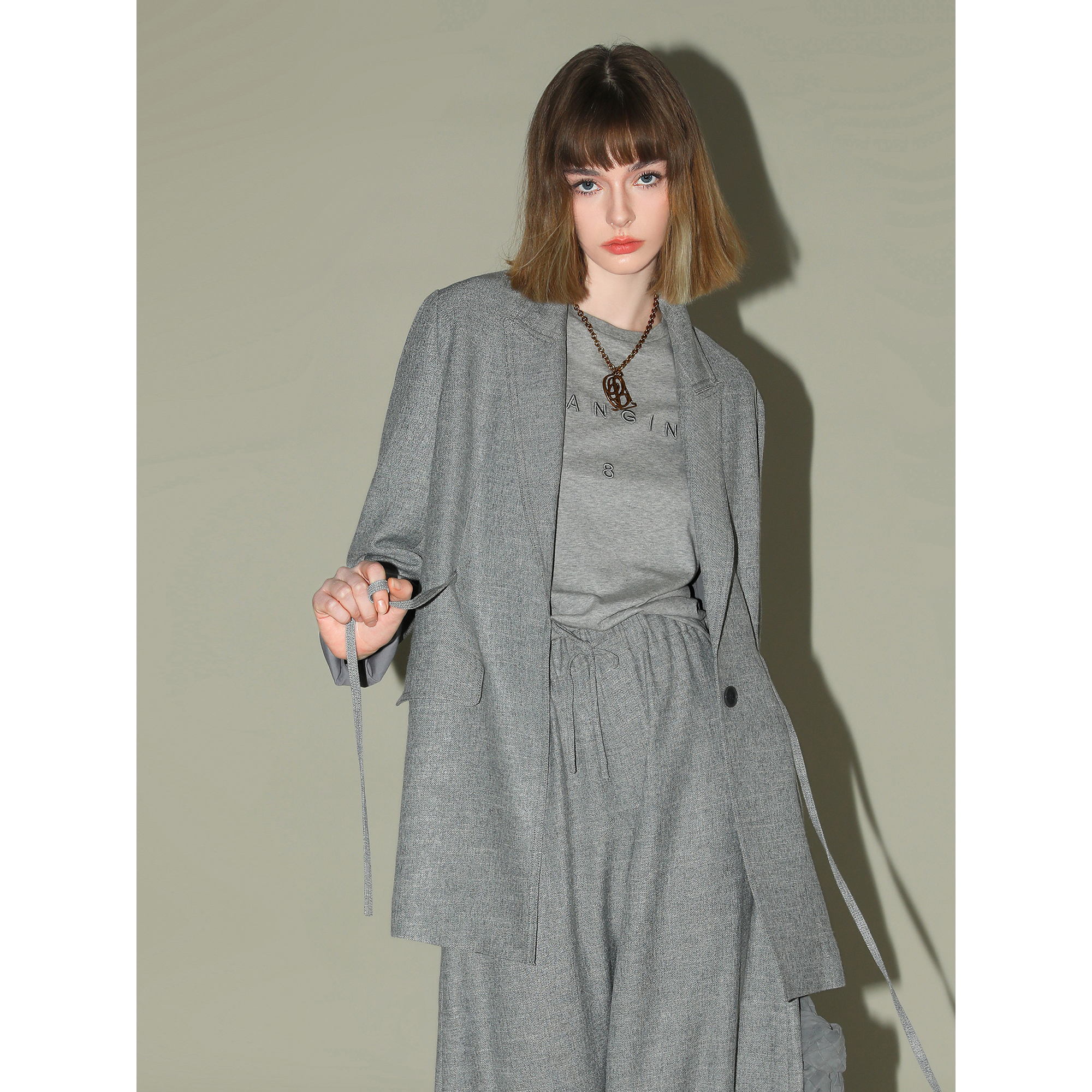 COCOBELLA格雷系穿搭花纱休闲西装 女高智感廓形外套SI3013